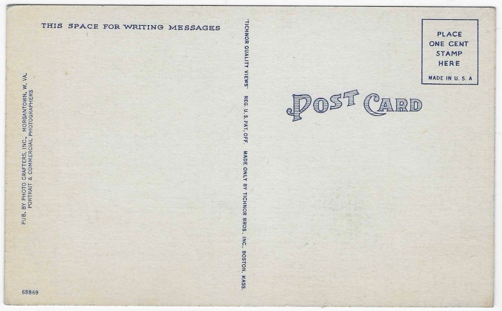 This postcard was never mailed so its exact age is unknown, but based on the catalogue number, this was likely published in the late 1930s to early 1940s.