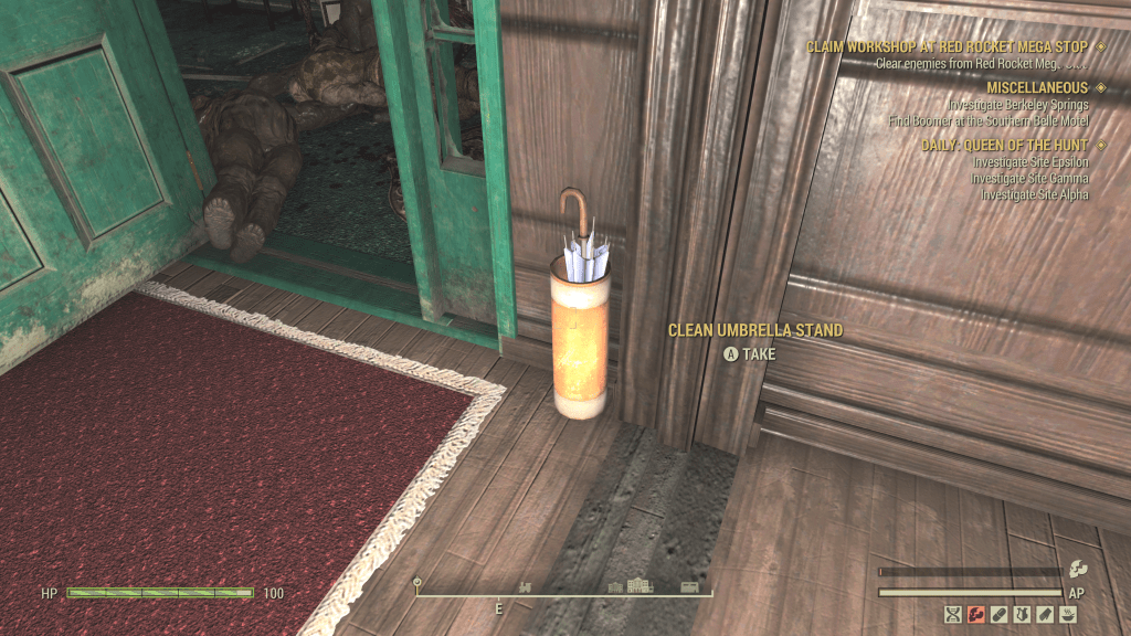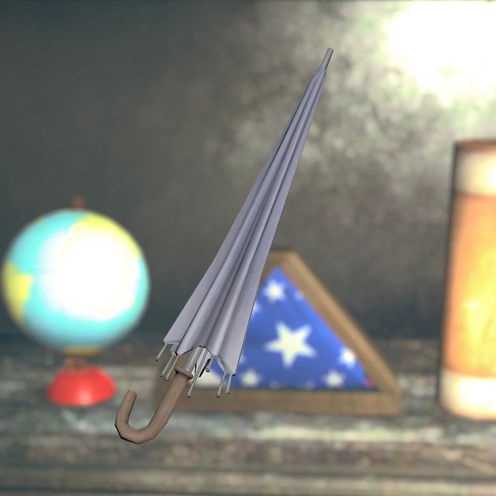 A Clean Umbrella and Clean Umbrella Stand can both be found in the President’s Cottage, as well. However, the umbrella is sadly not displayable.