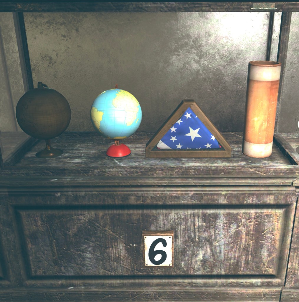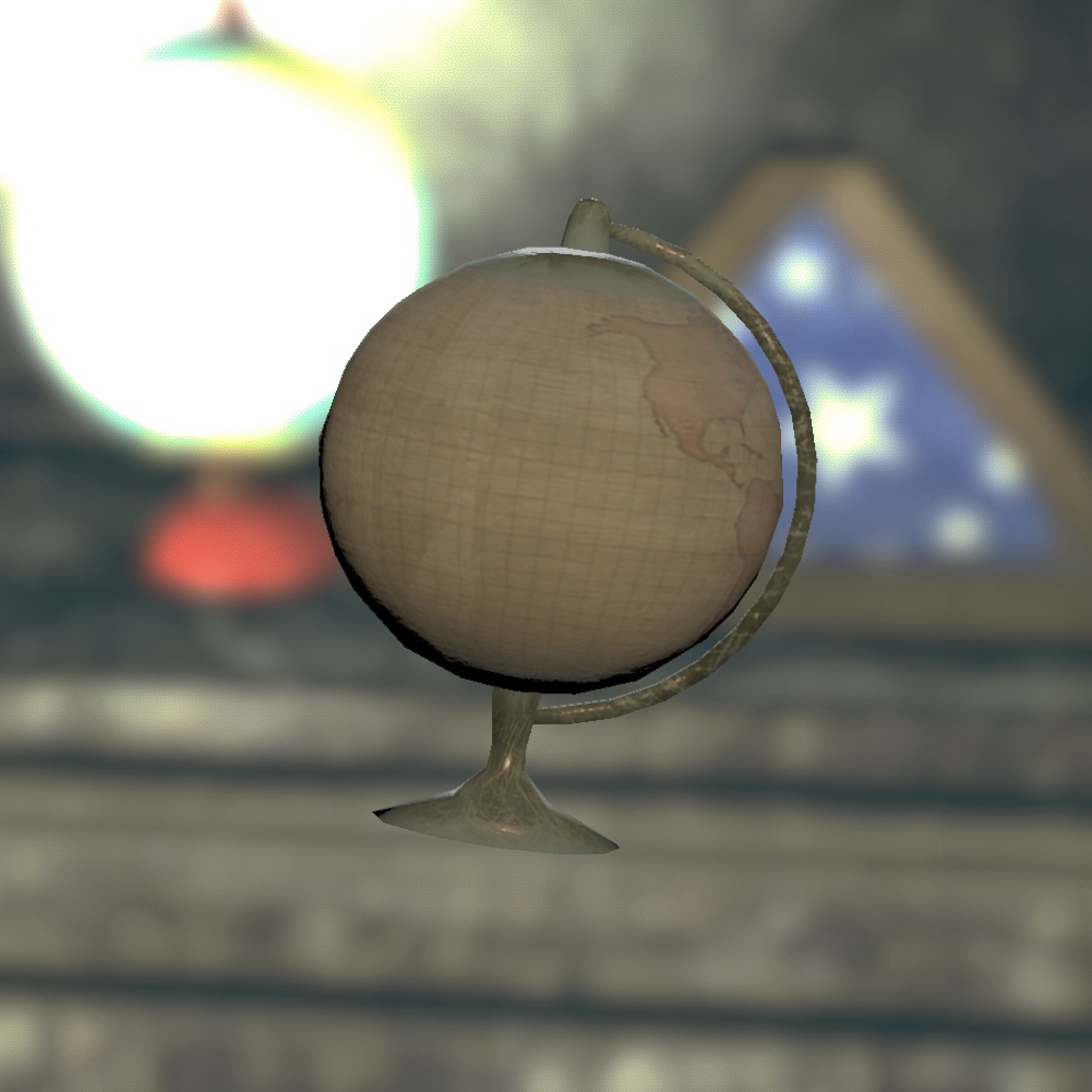 I found my Antique Globe at Old Danielson Cabin, near Radiant Hills. It’s on a desk along with a chainsaw.